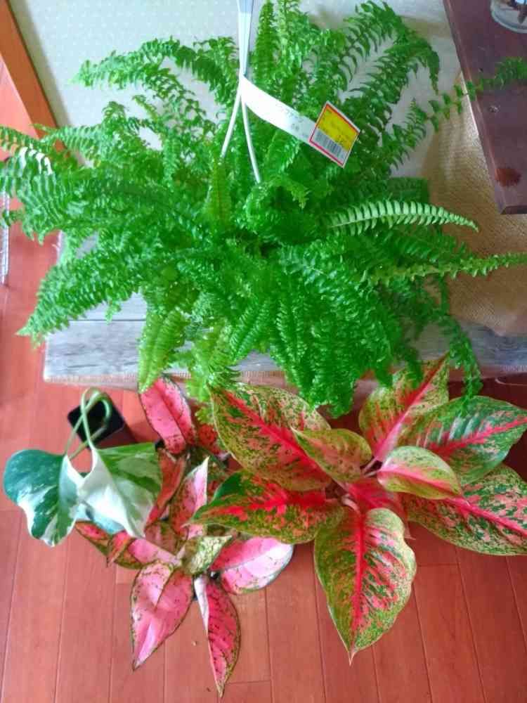 レジ脇に61%off 380円のボストンファーンが置いてあって