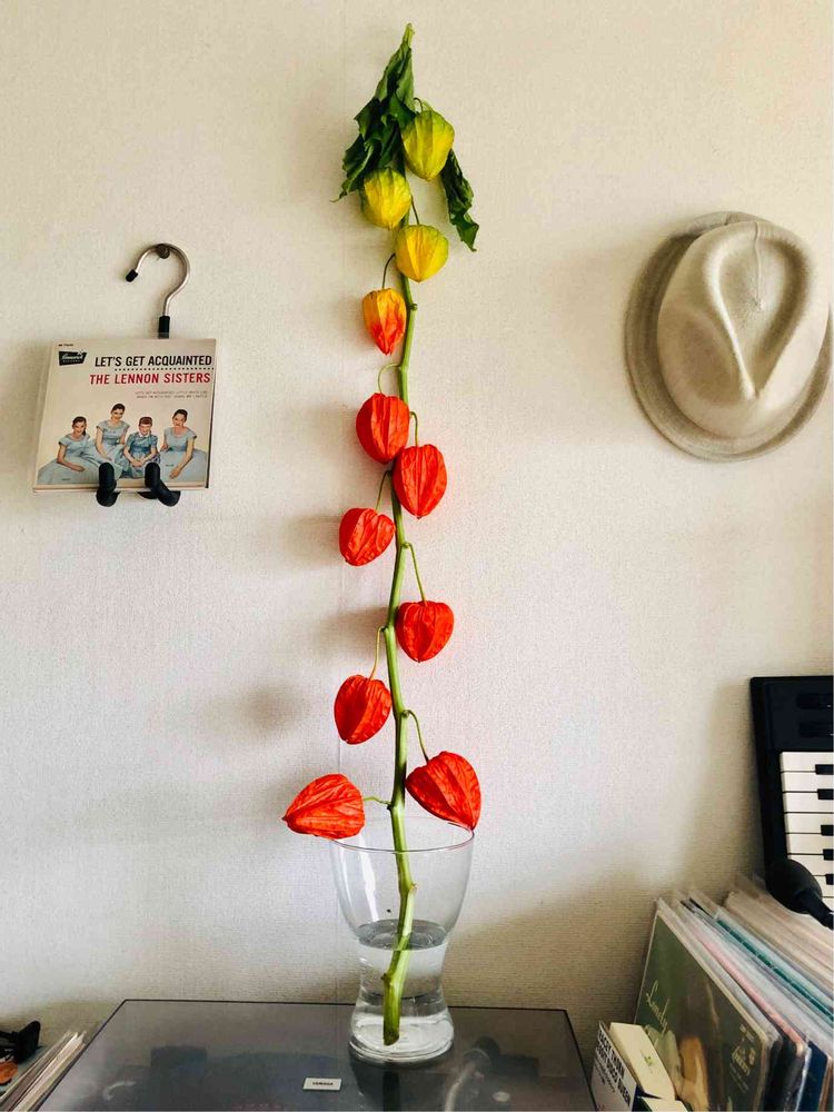 ほおずき、昨年は鉢を買ったのですが今年は房を買いまして、こんな飾り方も良いかな?なんて☺️