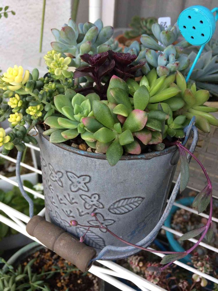 可愛い寄せ植え😍ジョーロ付きのバケツですか?オシャレ〜💞