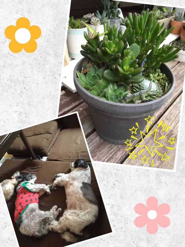 のんびり多肉チャン育ててます( ´θ`) ワンコが近くでよく日向ぼっこ してますね╰(*´︶`*)╯