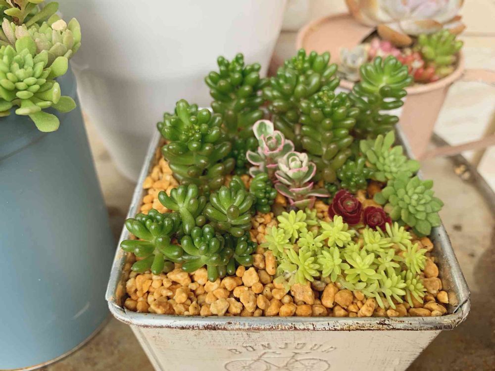 おまけで付けてくれたセダムとうちのグラウコフィラムを一緒に植えてみました♩︎