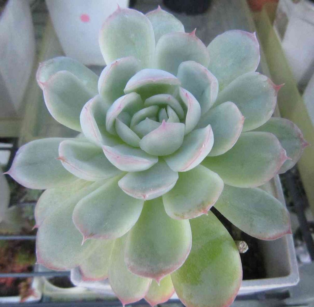 この色、我も久しぶりに見る色なんでーす。これ、薄ーく白粉が包んで、出ている色のようで、触れると剥げて黄緑がはっきりしまーす。この株も含めて、白粉をまぶす株は、剥げると、傷がついたようになるのが怖いところでーす。コメント感謝でーす。