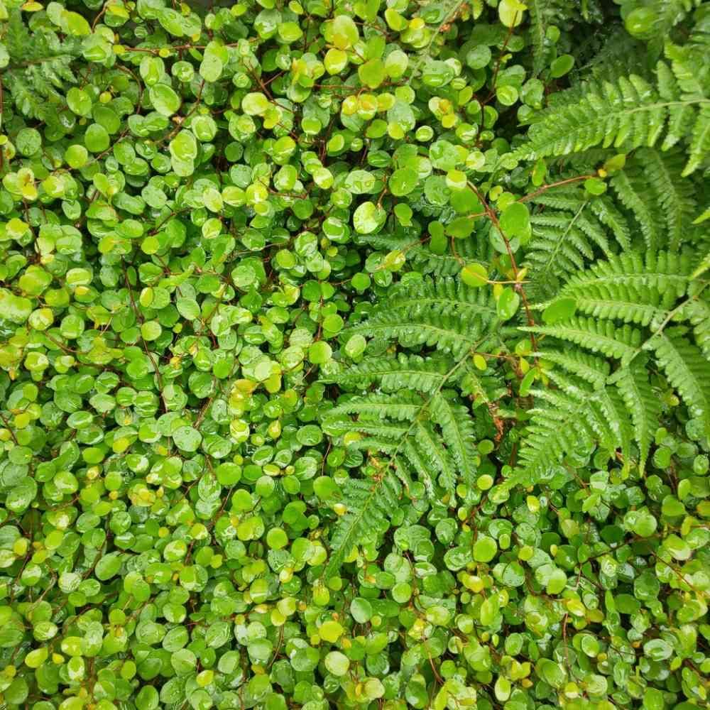 グランドカバーのワイヤープランツと自然に(笑)住み着いたシダ類