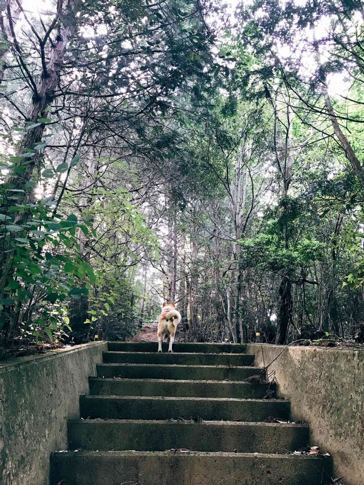 爽やかな林道での涼しげな✨のびのびとした🐶ちゃんと飼い主さんとの散歩ですね✨幸せな🐶ちゃんですね