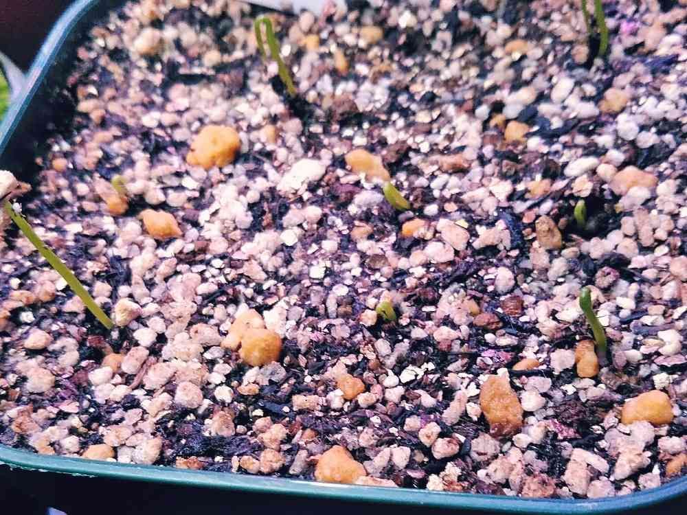 この写真ではまだ小さいが、今は大きくなって、10個中9個発芽して1個が折れちゃった(´・_・`)
