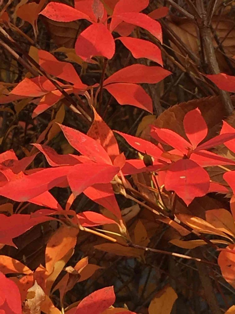 秋ももう終わり、ということで、ドウダンツツジのアップです。これもまた赤い色が綺麗でした。