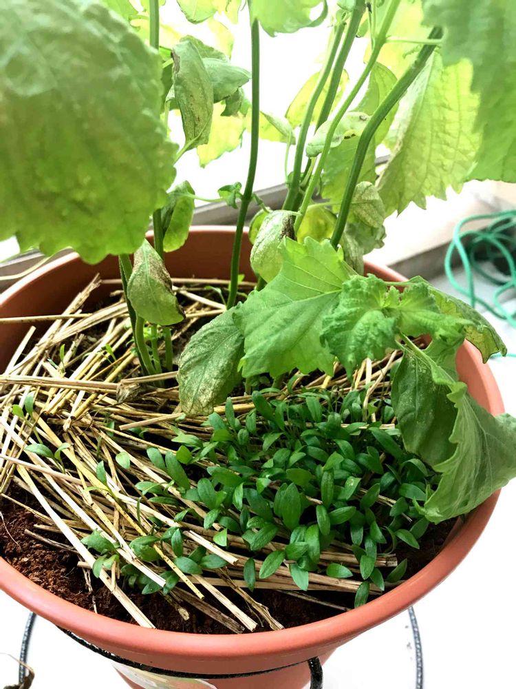 紫蘇の根元に急に芽が出てきた!新たな紫蘇かな😍