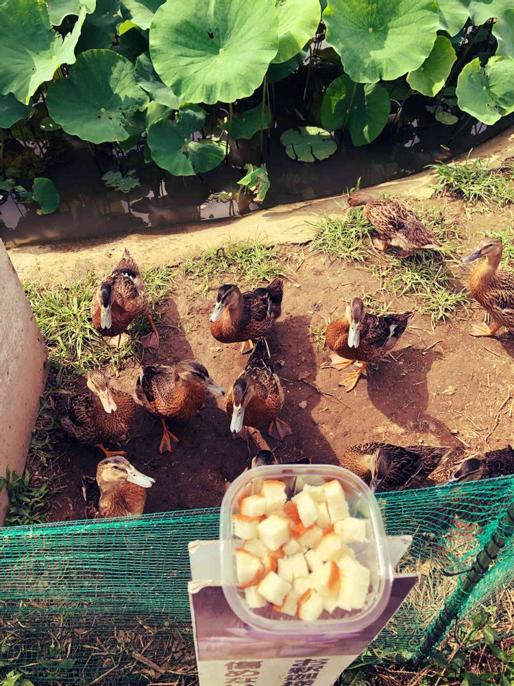ご褒美にそこに合鴨の餌(パンの耳)売ってたのでプレゼントしました☺️