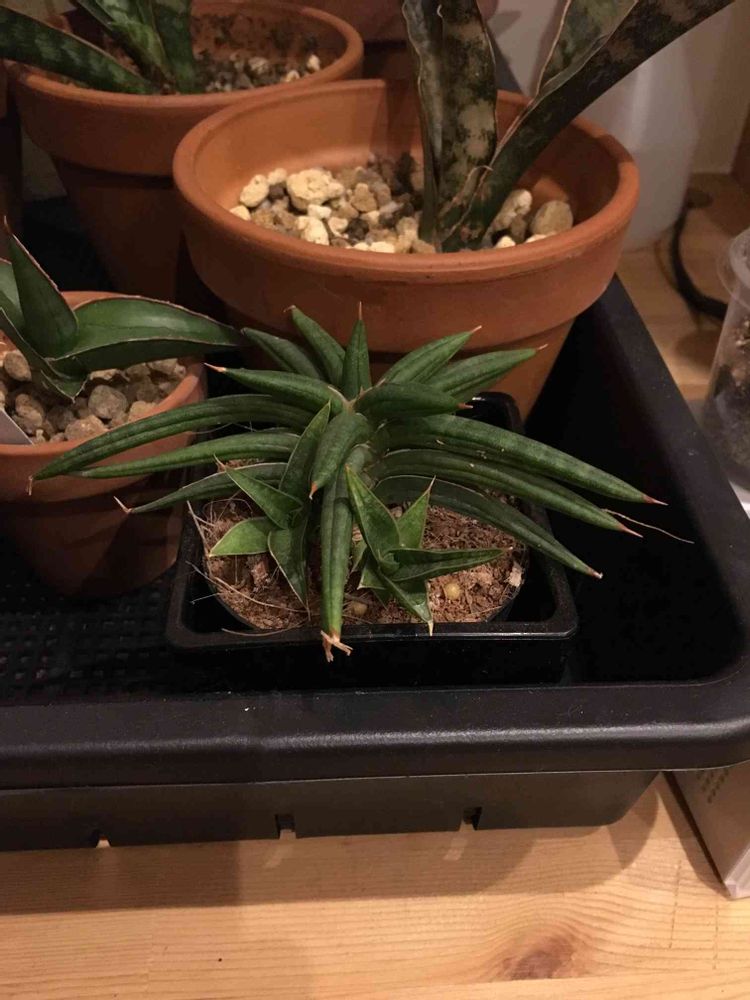 一応サンスベリア・フランシシーの名札が付いてたけど、、こんなに葉っぱ寝てたっけな