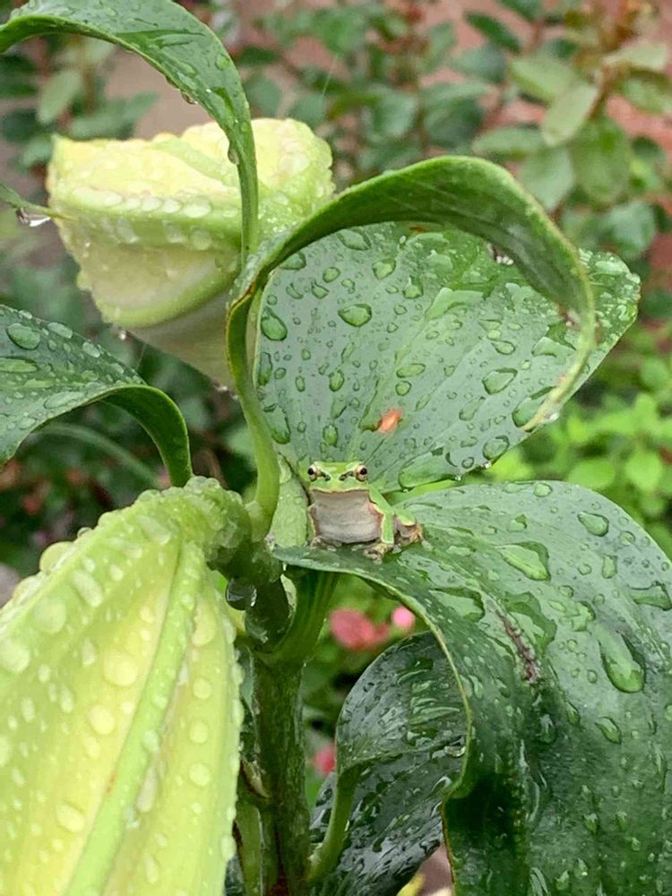 百合の葉に鎮座しておられます🐸✨