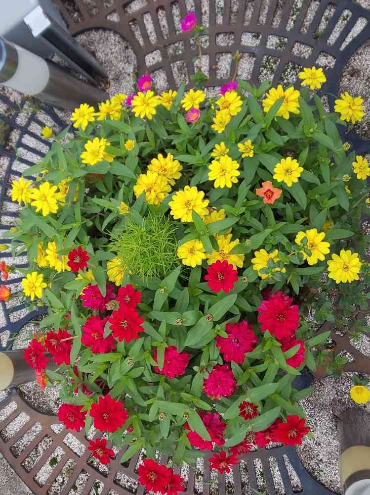 ありがと~👍🏼💓 今回の町民会館前広場の寄せ植えはいつになくいい感じでした!人によって違うのかもと思いました。ジニアが可愛いし色が赤と黄色だからグッド👍なんですよね~