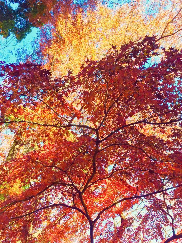 っていうか、下から見上げたモミジって、葉と葉が幾重にも重なって 色も重なり合って、本当に きれいですよね。 日本人で 良かった!