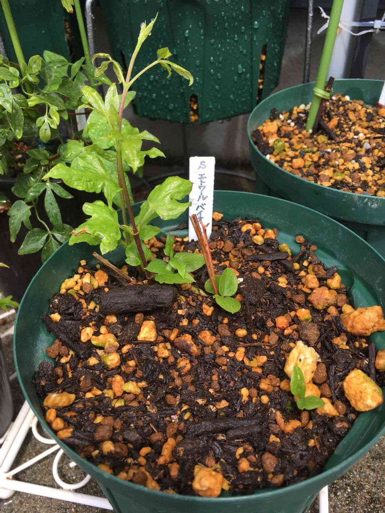 6月11日に見切り品で購入したエトワールバイオレット✨あまり良い土ではなかったので、できるかぎり土を落とし、20㌢ほどあった蔓をとぐろを巻くようにして深植えしました😌まだ小さい苗だったので今年は根付いてくれればいいかなと思っていましたが、4ヶ所から新芽が出てきました😆✨深植えはやっぱりすべきですね♬