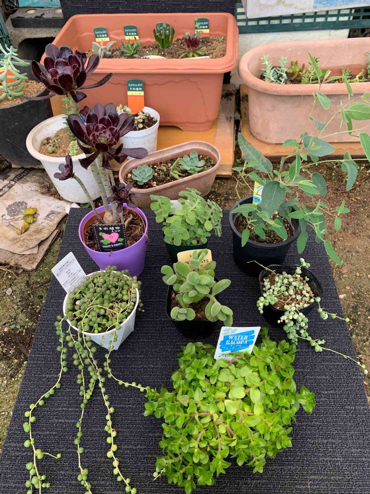 今日の多肉狩りの収穫です。欲しかった多肉さんたちをゲット☆左奥から黒法師さん、アロマティカスさん、檸檬ユーカリさん、斑入りグリーンネックレスさん(なぜか2ポット)そして一番欲しかったクマたん(熊童子)、あと手前がウォーターバコパ❣️葉っぱを撫でるといい香りがします。