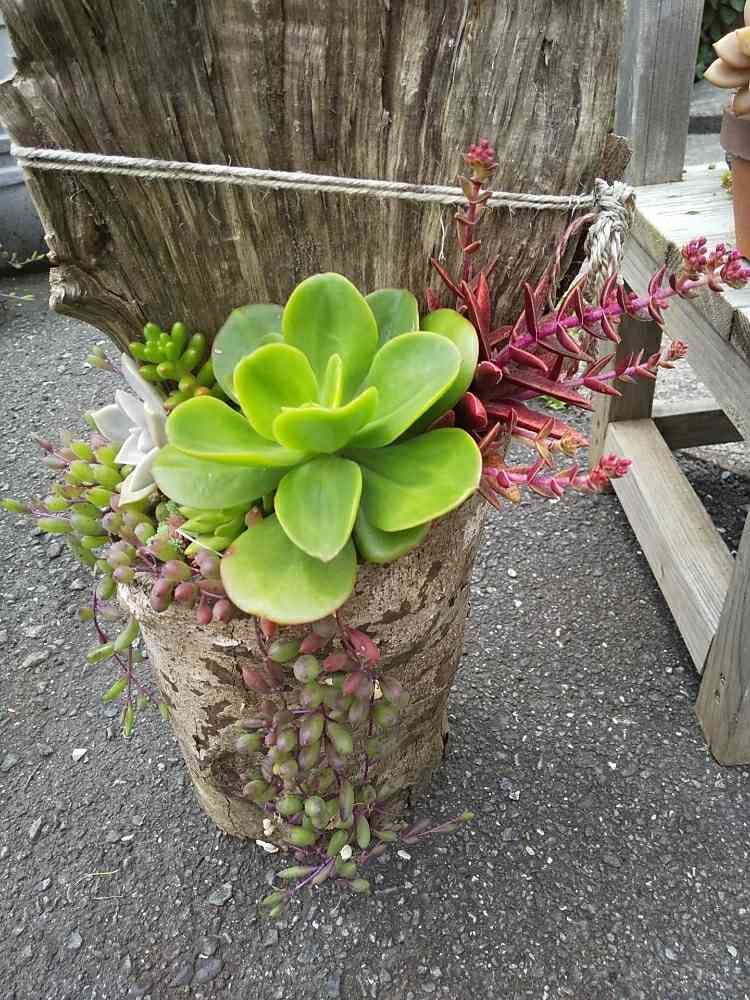 切り株に寄せ植えしてみましたが、写真より 本物見にきて、くださいねぇ🎵野外と不定休の為電話確認忘れにお願いいたします。