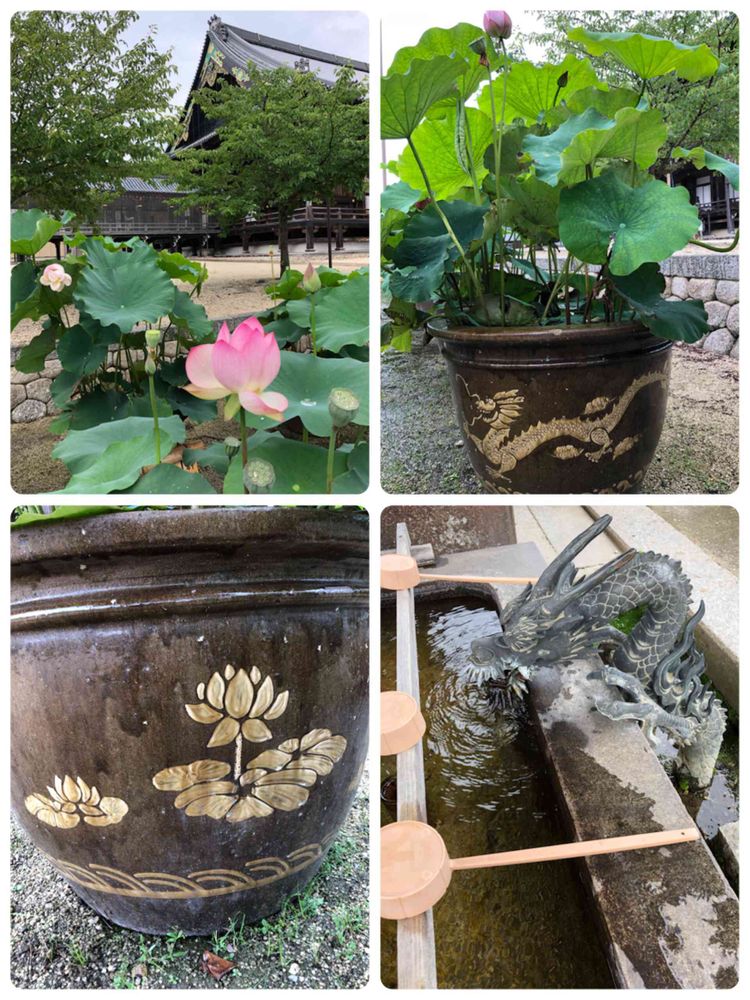 蓮さんが🐲龍🐉とハス🍀の模様の鉢に植えられてました‼️👩⚖️👩🏻⚕️👩🏻🔬