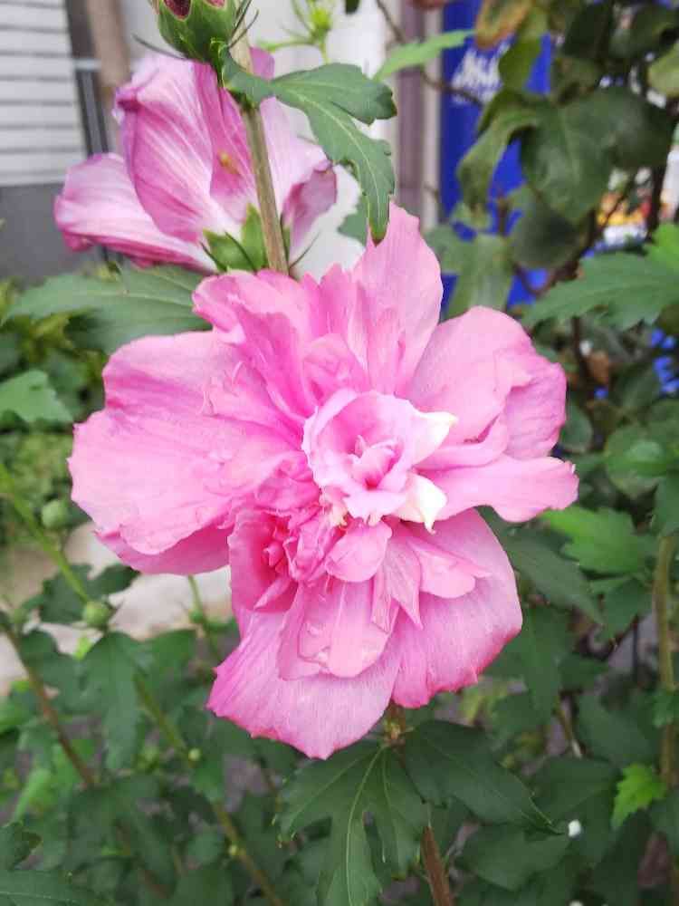 夏といえばムクゲですネ、この辺では八重のムクゲは見かけることは無いですネ。初見です。