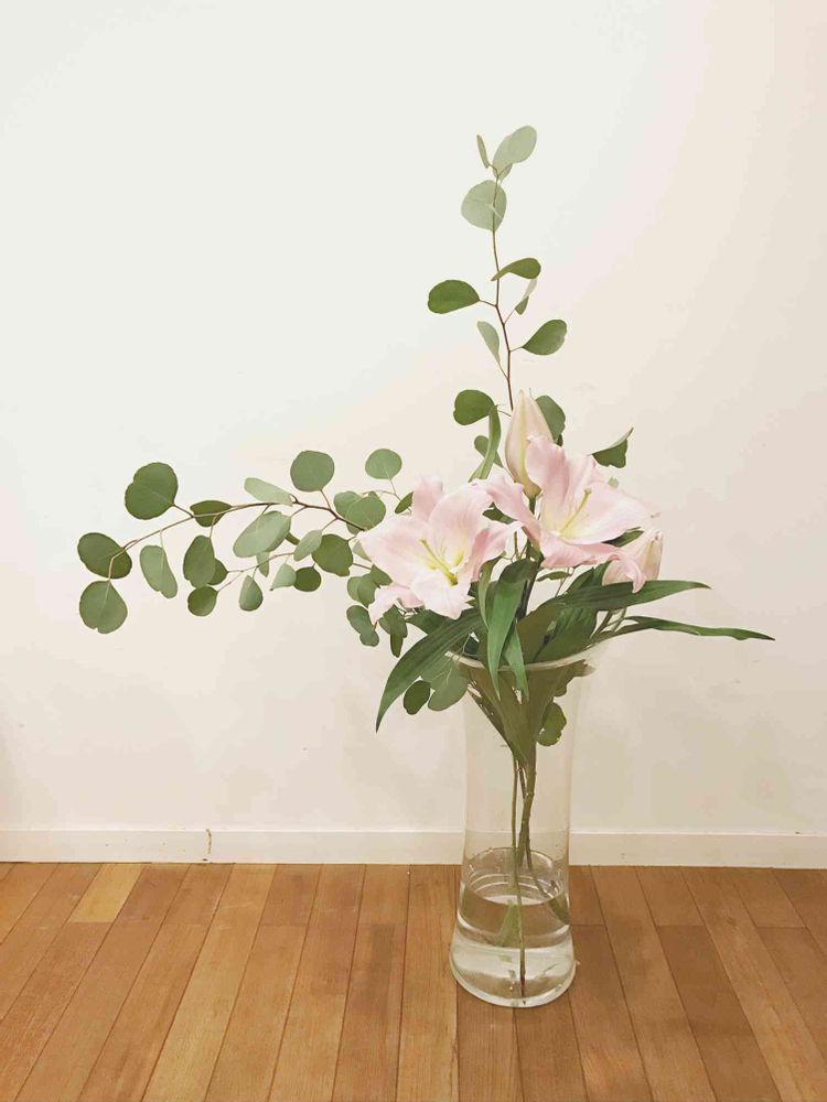 出展する友人のお祝いに、ガラスの花瓶に百合とポポラス投げ入れてもって行きました〜〜♡♡♡