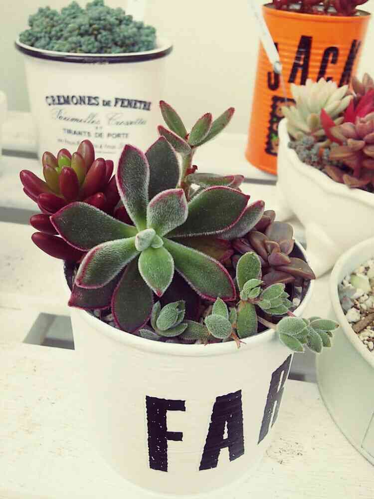 実家にからもらったハムシーちゃんを寄せ植えしました~縁がピンクなのね(^^)