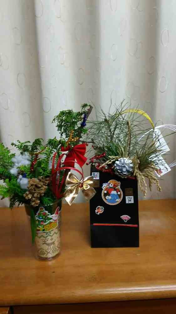 お正月とクリスマスを一度に🎶両日まで持たさないといけないので、お水は入れないでとの事❤黒い袋はワイン🍷用をカットしたものだとか☺