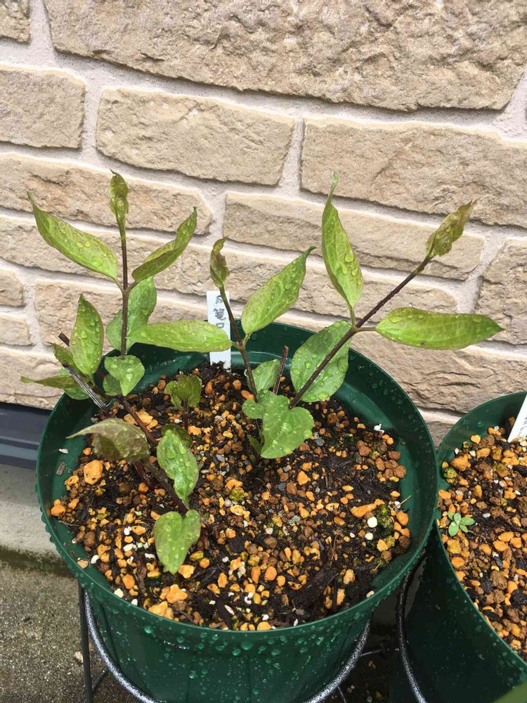 切り戻し、ひとまわり大きな鉢に植え替えていたロウグチ。どんどん成長してくれています✨