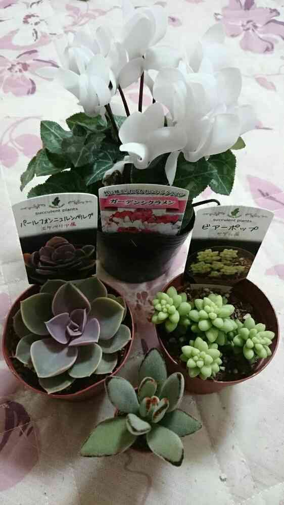 ホームセンターで白のガーデンシクラメンさんを、