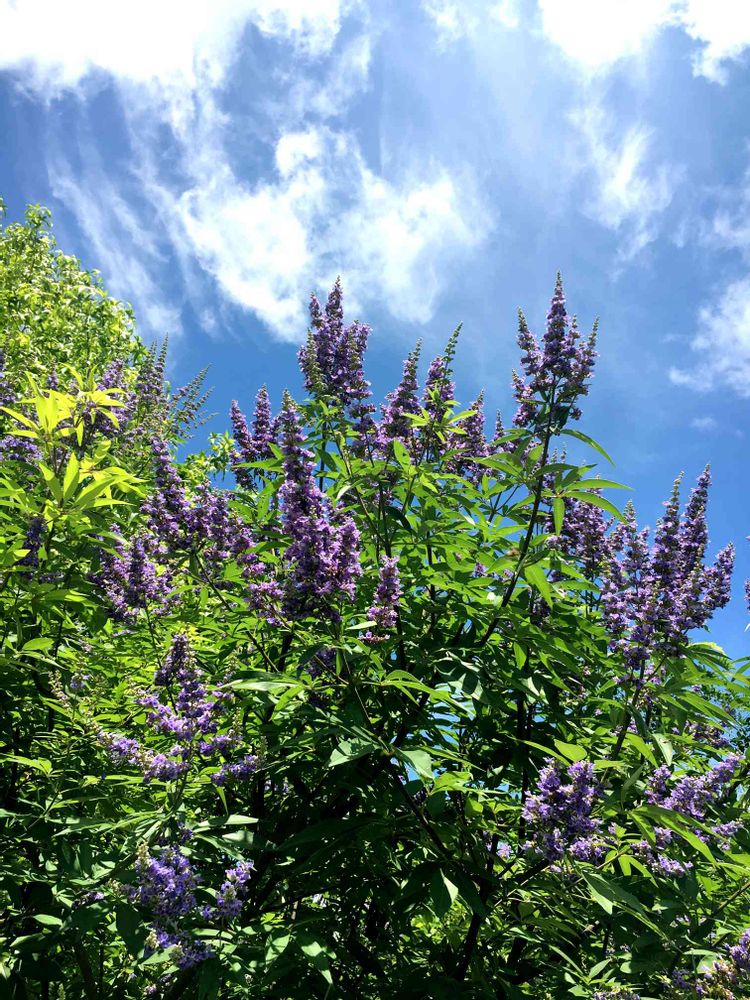 雨で庭を見てない間に、西洋ニンジンボクのムラサキの花が満開になってました。