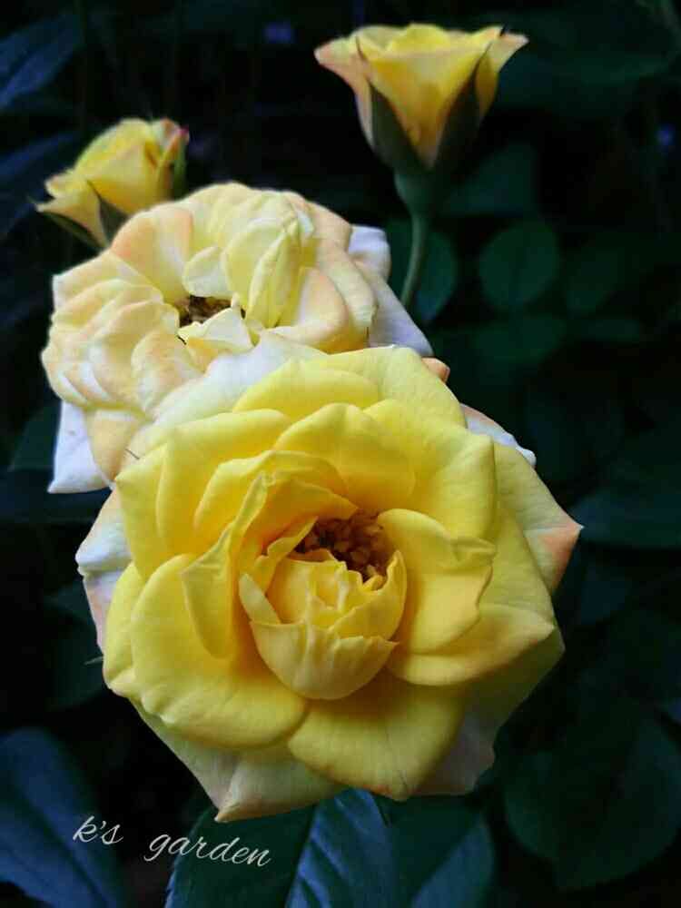 蕾から黄色のグラデーションがドンドン変わっていくから別のバラが咲いてるみたいで毎日見るのが楽しいの😃🎶