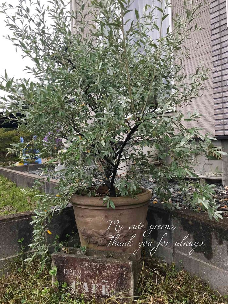 こちらは岩手県の寒冷地で本物のオリーブは戸外越冬できません。