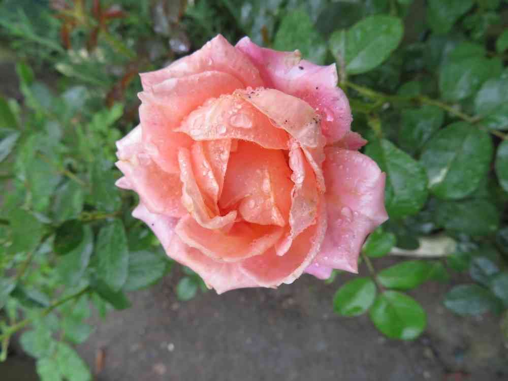 2日間留守にしている間に相当、雨に打たれ黒星が蔓延している中のミニバラです。