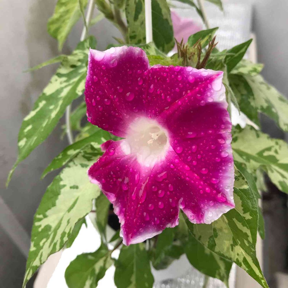 雨ばかりで、綺麗に朝顔が開かないようなので、一旦、中に入れました。