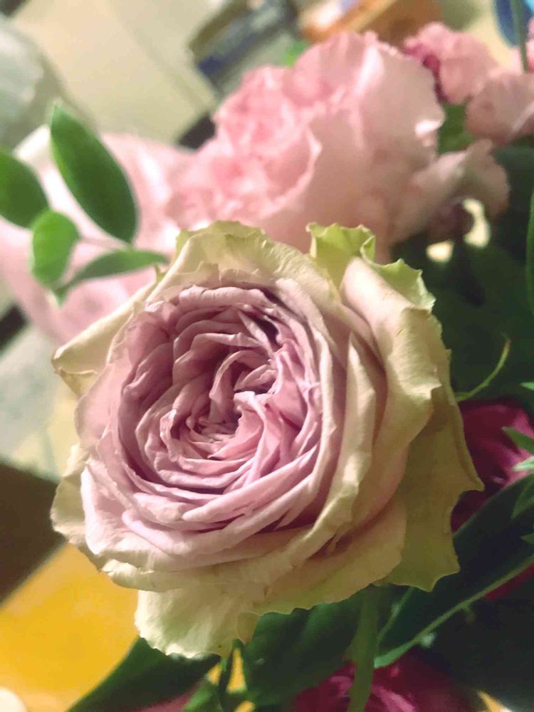 昨日のコンサートでいただいた花束。その中で特に気に入ったバラ🌹ブルーミルフィーユというそうです✨