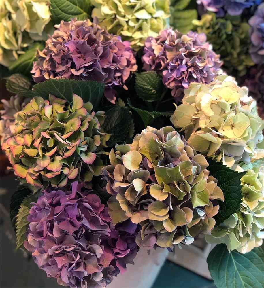千葉県の青木園芸さんのあじさいです。6月頃から11月頃まで、毎週定期的に入荷しています。同じ種類でも色の移り変わりが少しずつ異なり、雰囲気があります。