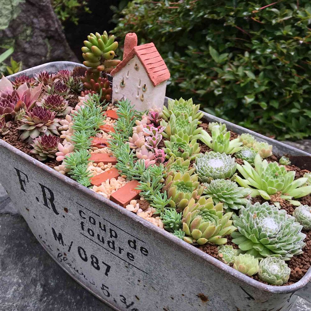 小さな庭,多肉植物寄せ植え,センペルビブムの投稿画像