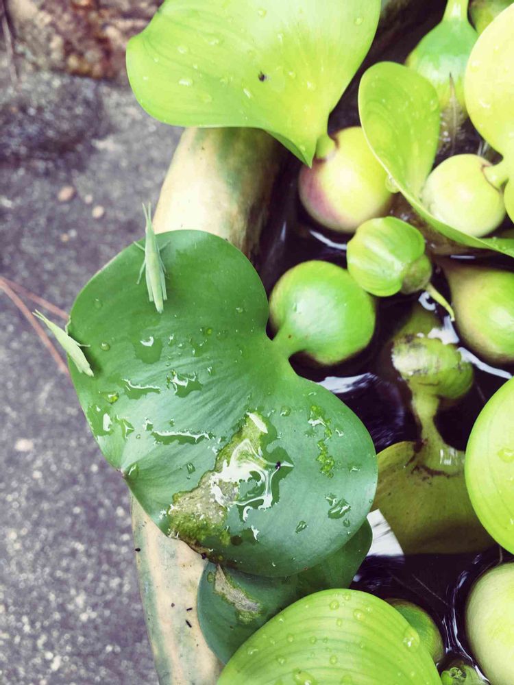ホテイソウにオンブバッタの赤ちゃんが来ています🦗🌿