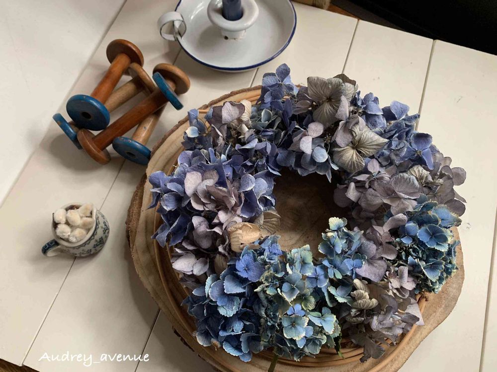 Audreyさんの青いアジサイ、シックで素敵なリースに変身ですね💙✨