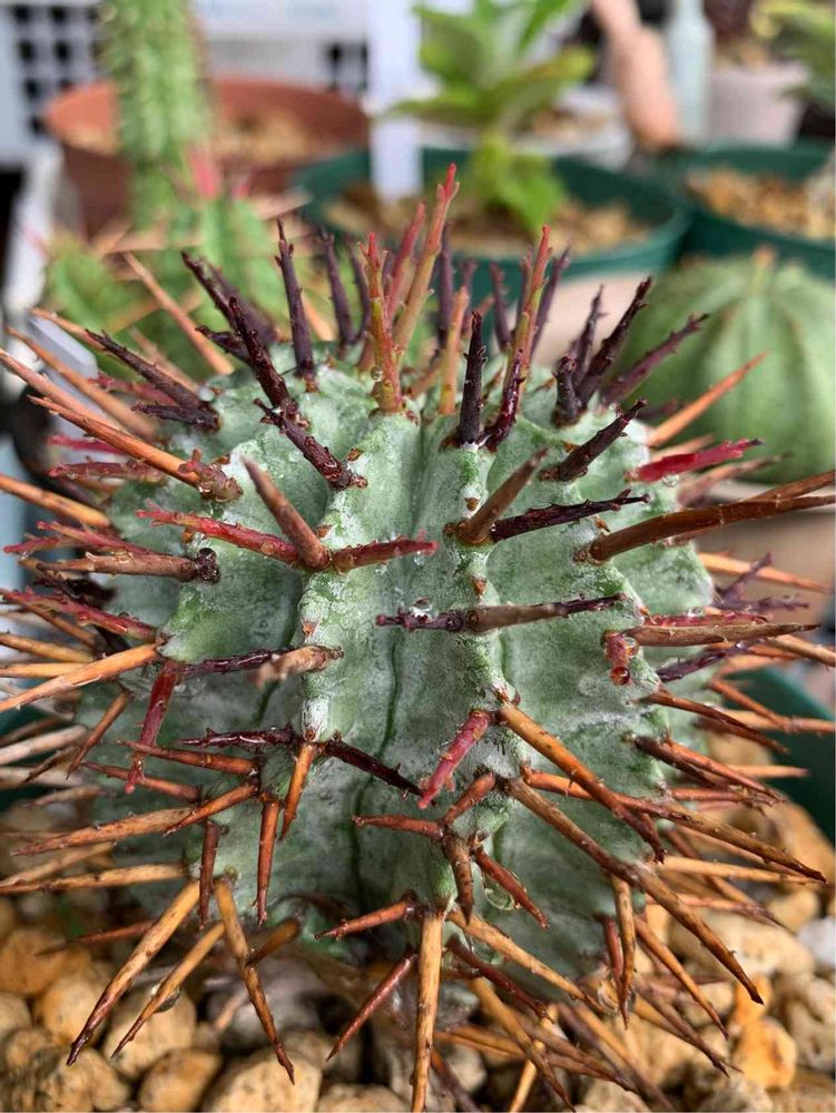 うちのユーフォルビアの王様格、いい感じになってきました^_−☆ 今日も直射日光ガンガン当てています。ちなみにズキズキちゃん、この棘は見掛け倒しで痛くないですよ😉