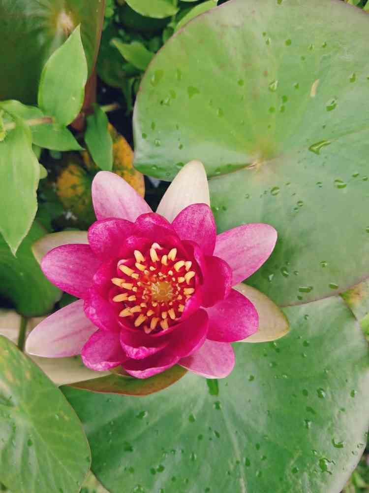 3年越しで咲きました🌻毎年水をあげているのですが、なかなか咲かず…💦今年は雨が毎日のように降っていたので睡蓮にとって恵みの雨だったようです☔