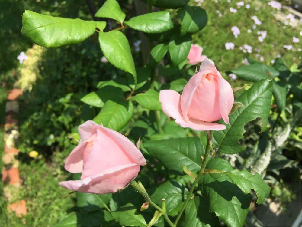 二つ揃ったナエマさん。もうすぐ開花。楽しみです。今日は薬剤散布庭全体にしました。虫さんには食べられるし、黒星病も少し出てきて、雨だからと少しサボり気味だったため、お世話しなきゃなと💦