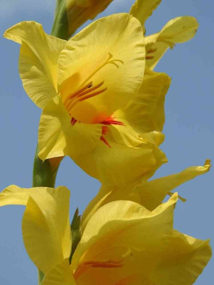 青空に映える黄色いグラジオラスの花🌸