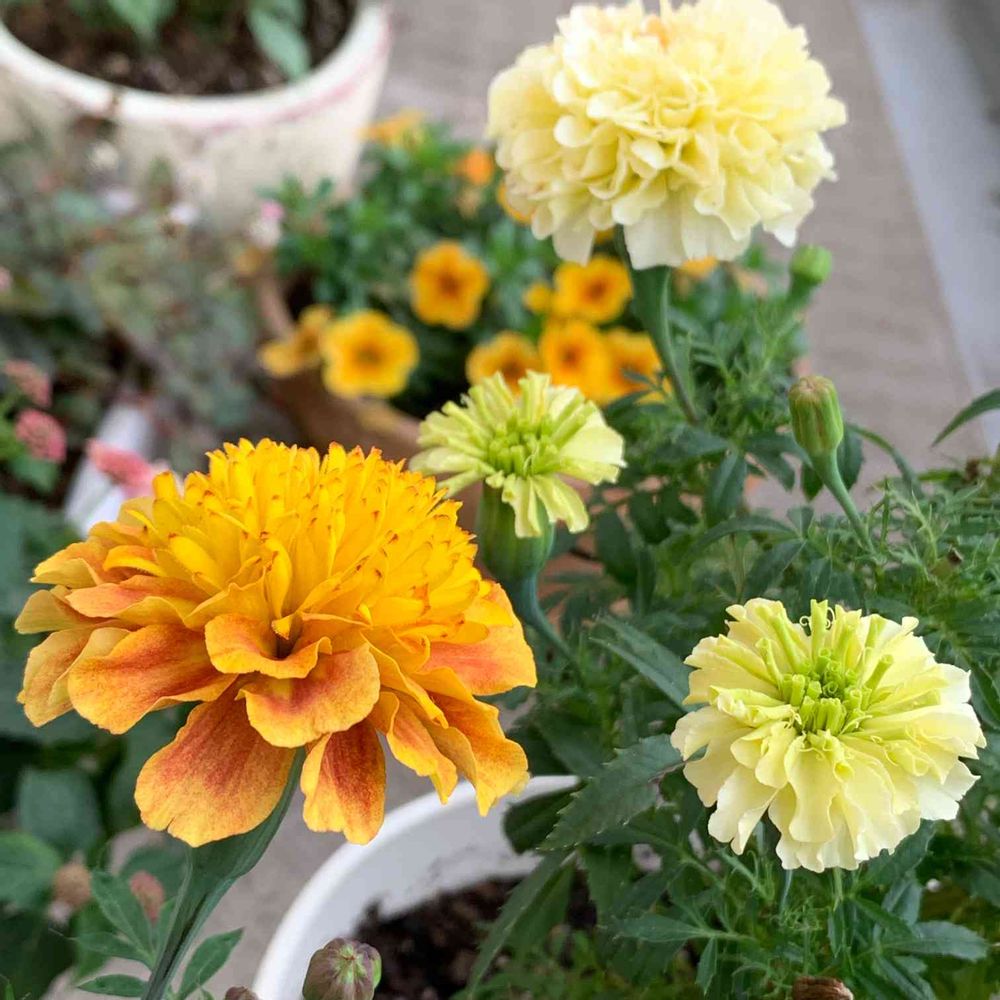 咲きはじめから、だんだんと色が変わってくれるマリーゴールドさんです☺️