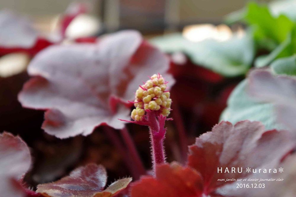 さん、花茎が伸びて小さな花が咲きます♪本来は晩春に咲くんですけど。。。^^;