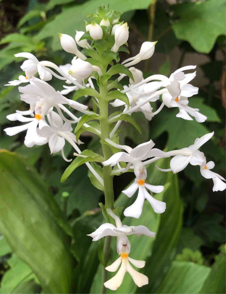 ツルラン、綺麗ですね❣️手と足をパッと広げて下向きになってる花びらから、ぶら下がっているように見えました❣️可愛い💕(♡ˊ艸ˋ♡)