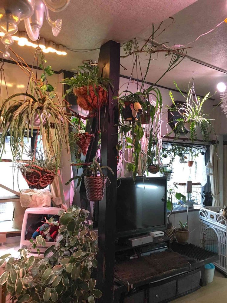 犬猫鉢植え多頭飼いです。猫がワルさをするので、吊り鉢が中心です。