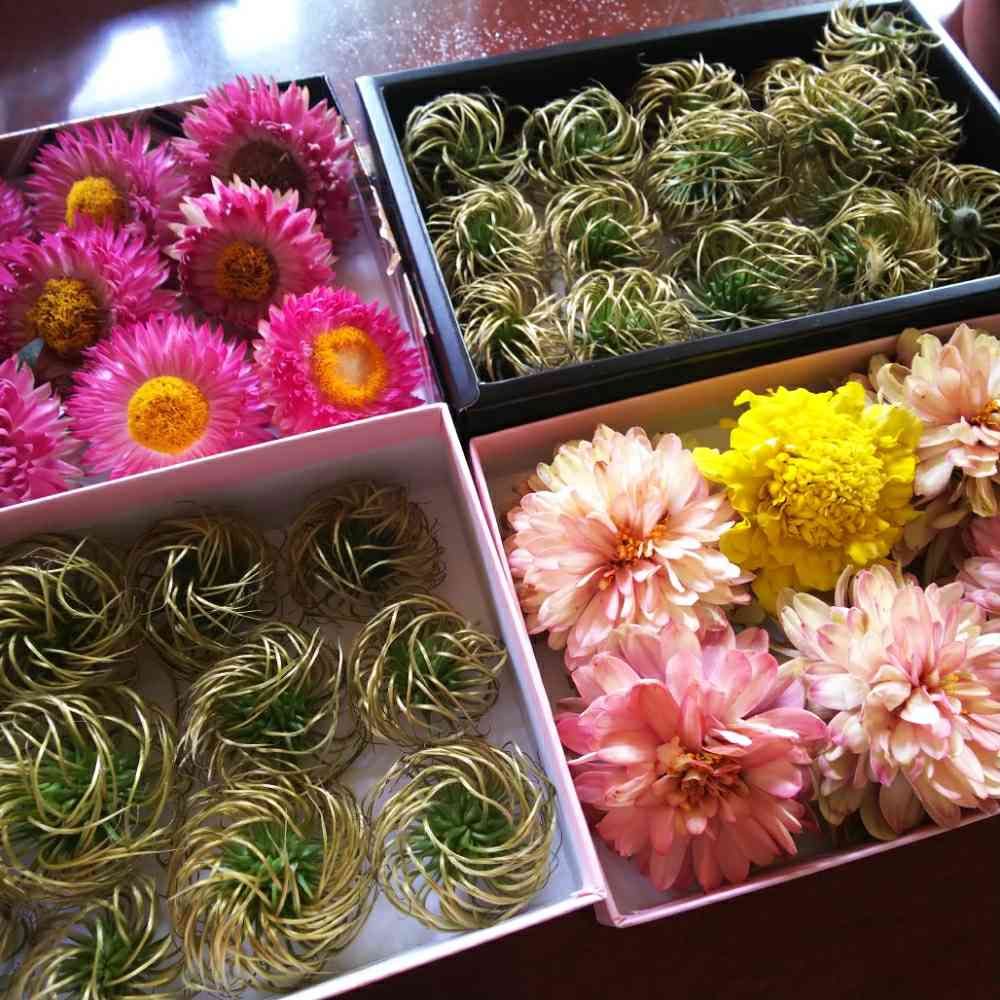 いつもはリース作りにカサカサ花等、買うのですが、綺麗な色出したいので、シリカゲル待ち🎵