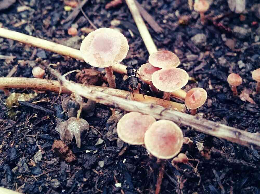ムスカリが枯れて、跡には謎のキノコ🍄