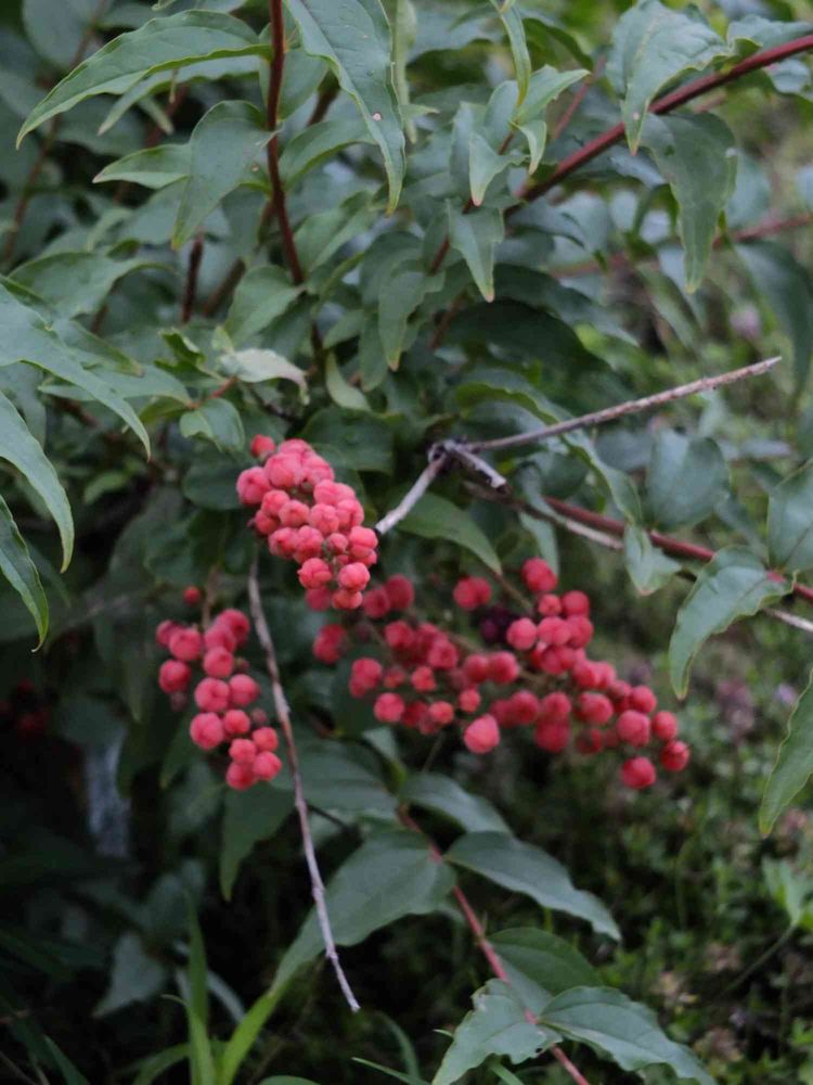 白山高山植物園にて、青や白い花が目立つこの時期に一際目を惹く真っ赤な実。まさかドクウツギ?