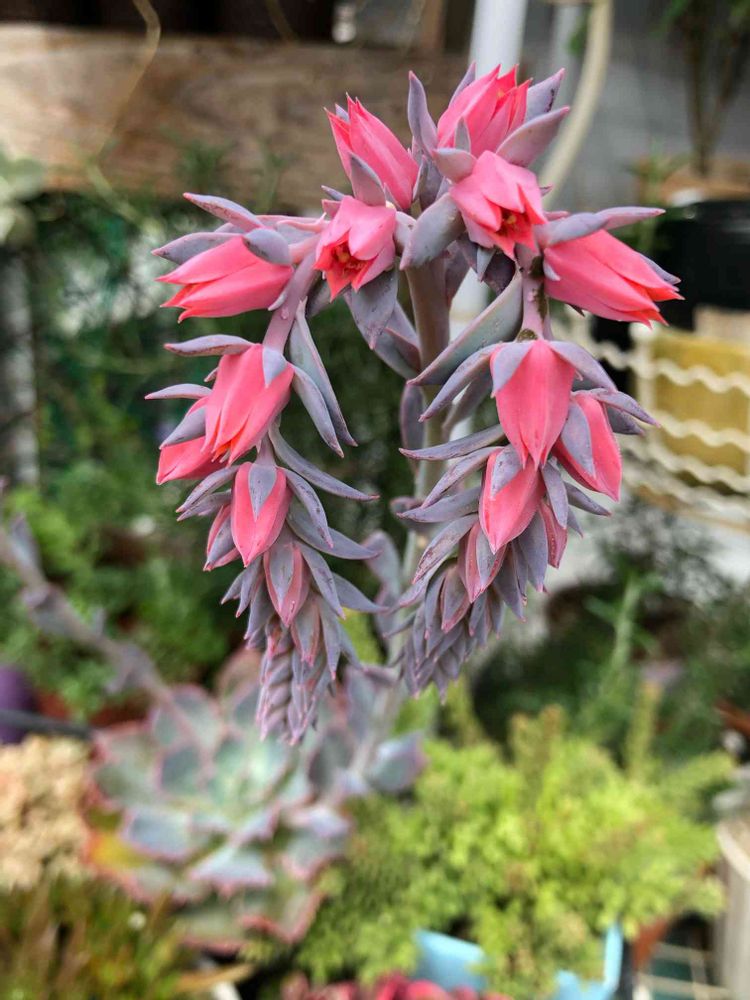 そんな多肉の花芽が2つも伸びてようやく開花してきました。やっぱり親に似て素敵な色合い!
