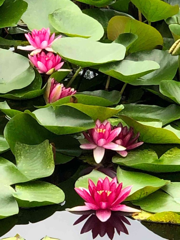 池いっぱいにスイレンの葉が色鮮やかに浮かんでいました。