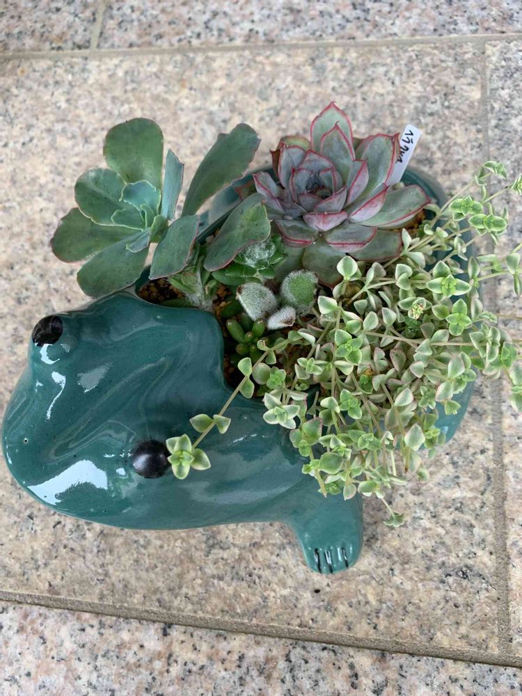 先日買ったカエルに寄せ植えしてみました〜
